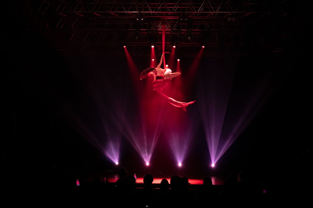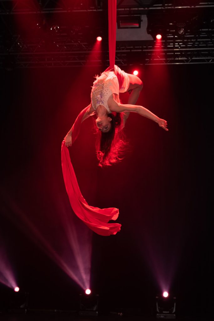 Pauline a sublimé la scène avec son numéro de tissu aérien et Philippe, magicien, a époustouflé les convives.